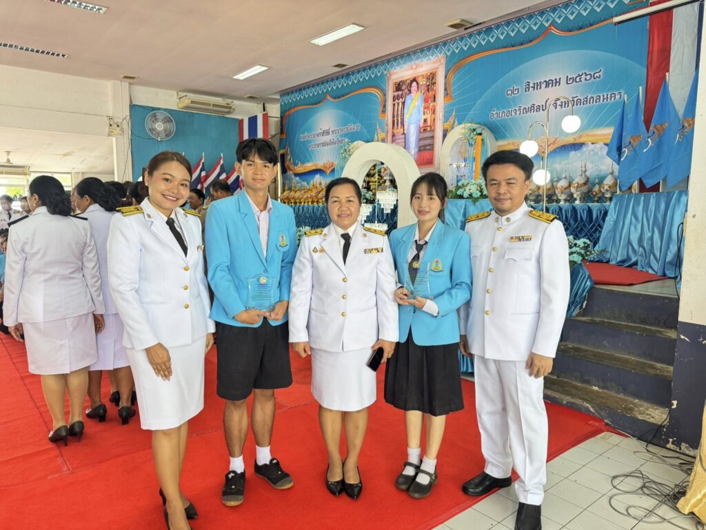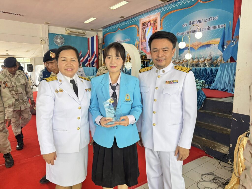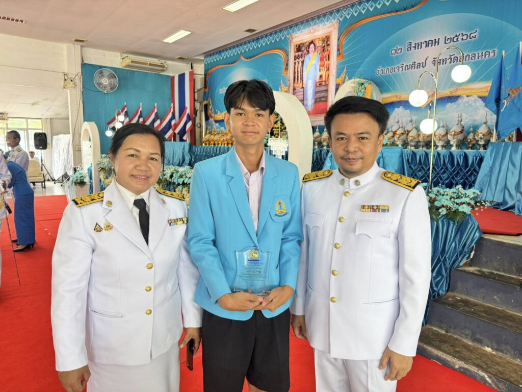 ทั้งสองคนได้รับโล่ประกาศเกียรติคุณจาก นายวัชรา ยวดทอง นายอำเภอเจริญศิลป์ ในพิธีมอบรางวัล ณ หอประชุมอำเภอเจริญศิลป์ จังหวัดสกลนคร