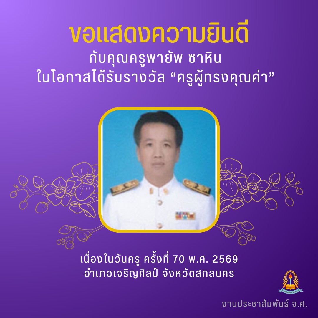 ขอแสดงความยินดีกับ คุณครูพายัพ ซาหิน